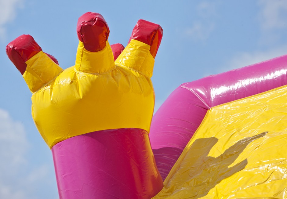 Schoenen, eten, drinken scherpe voorwerpen, slingers én confetti (shooters) zijn verboden in het springkasteel!
